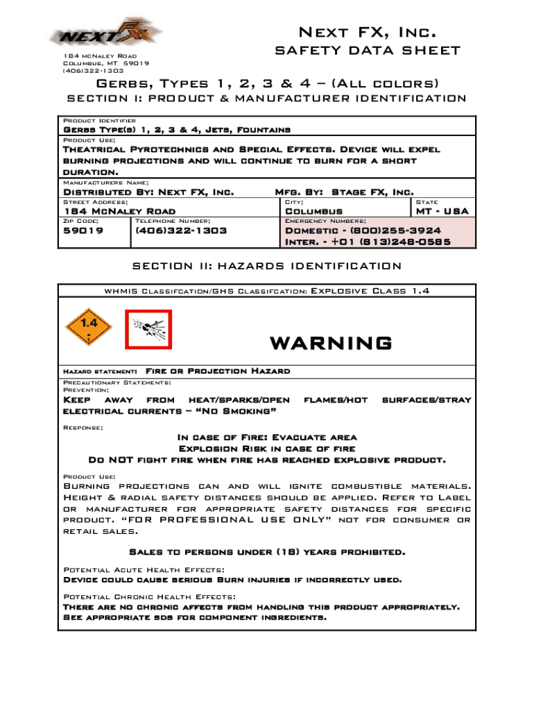 (406)3221303SAFETY DATA Shelters, Types 1, 2, 3 & 4 (All colors)SECTION I: PRODUCT & MANUFACTURER IDENTIFICATION