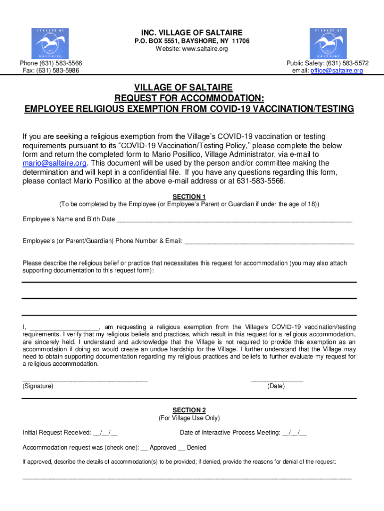 To fill out forms for the incorporated village of Saltaire, individuals can contact the village office or visit their website for instructions and guidance.