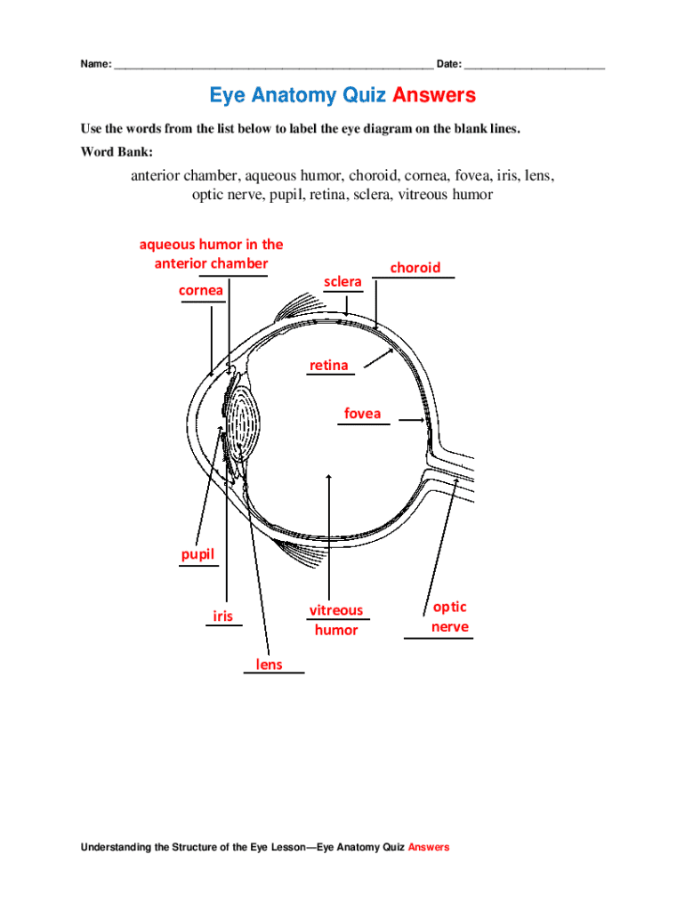 Name: ___ Date: ___Eye Anatomy Quiz Answers