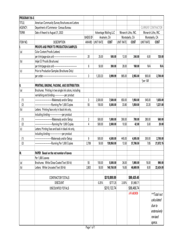 Get the free **Total not calculated due to extensively revised specs.