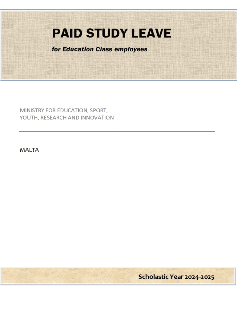 PAID STUDY LEAVE for Education Class employees for Education Class employeesMINISTRY FOR EDUCATION, SPORT, YOUTH, RESEARCH AND INNOVATIONMALTAScholastic Year 20242025Page |0PROCEDURES and GUIDELINES
