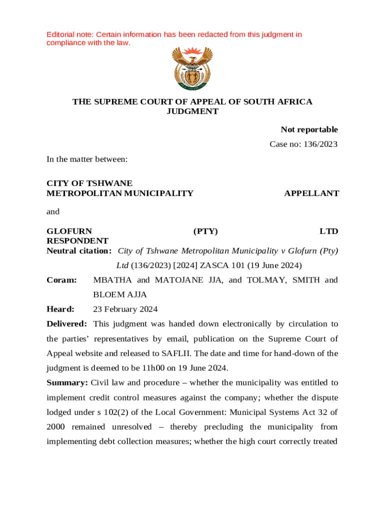 compliance with the law. THE SUPREME COURT OF APPEAL OF SOUTH AFRICA