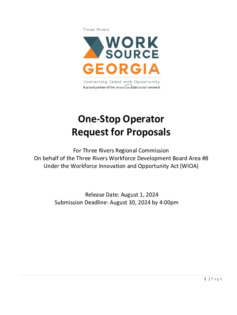 OneStop Operator Request for Proposals For Three Rivers Regional Commission On behalf of the Three Rivers Workforce Development Board Area #8 Under the Workforce Innovation and Opportunity Act (WIOA)Release