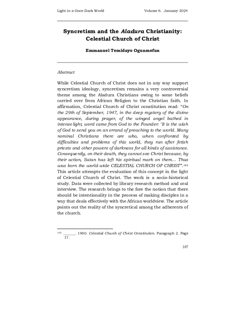 Syncretism And Form Aladura is not the form you're looking for?Search for another form here.