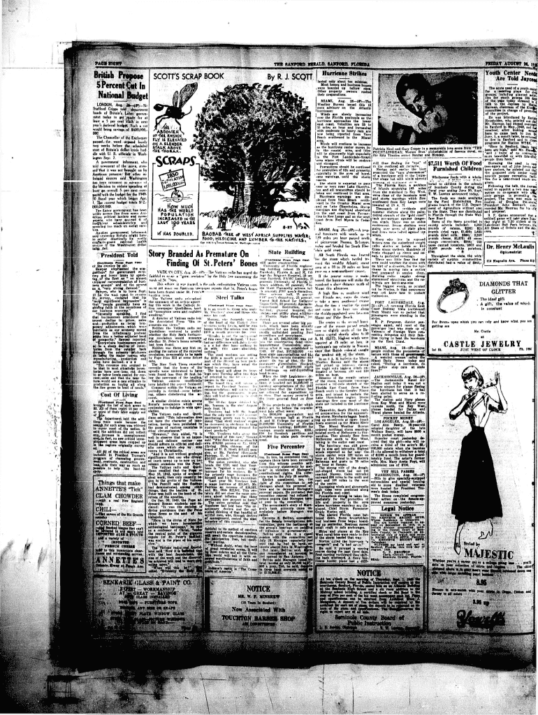 R\'s c o n \'s SCRAP BO O By R. J. SCQTTNational Budget\”Youth Center Need Are Told JayeegHurricane Strikes lasted only about ten minutes. Moat home and Boolean houses were boarded up before neon.