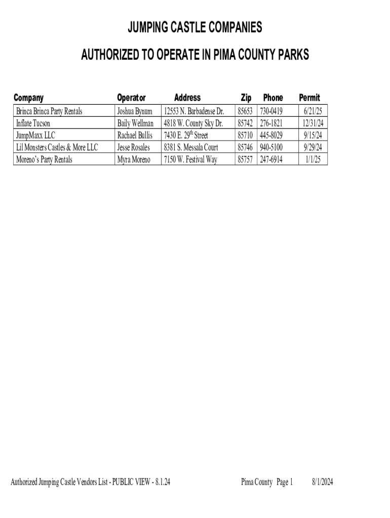 Get the free Jumping Castle Vendors List. Authorized Jumping Castle Vendors List