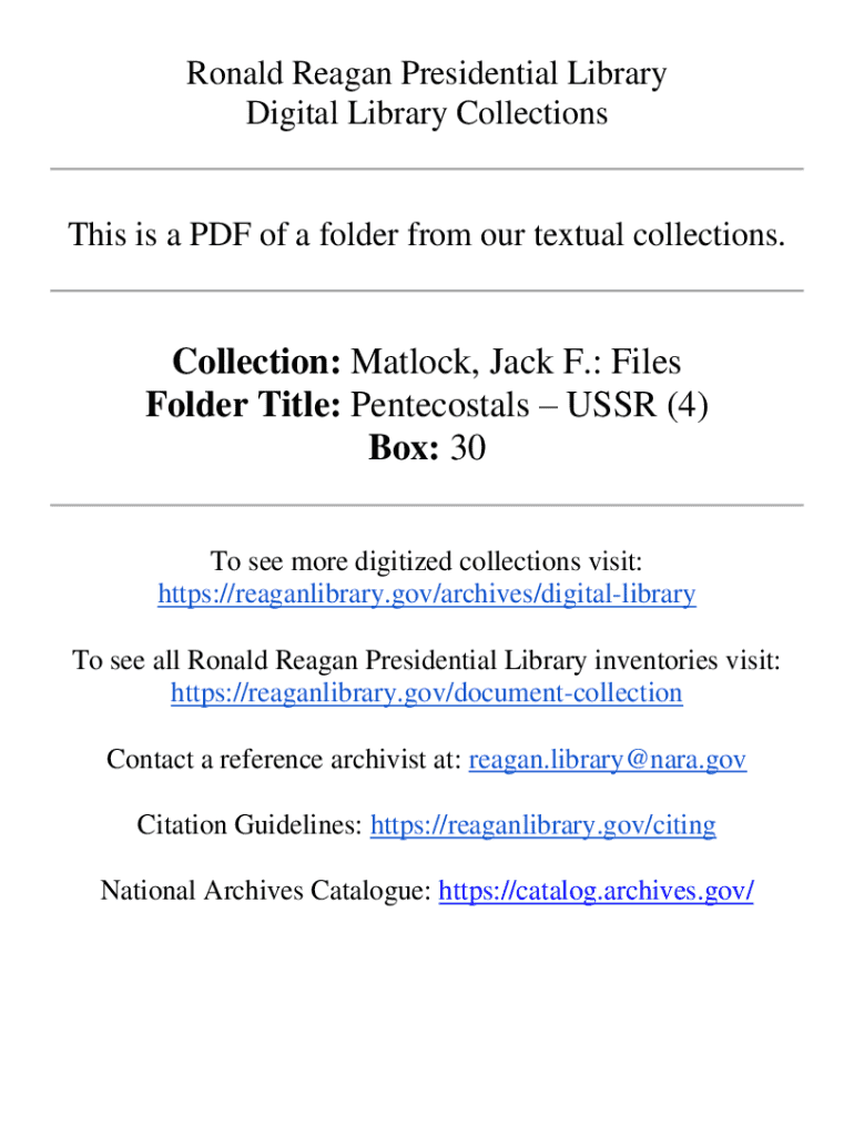 Get the free Collection: Matlock, Jack F.: Files Folder Title: Pentecostals USSR ...