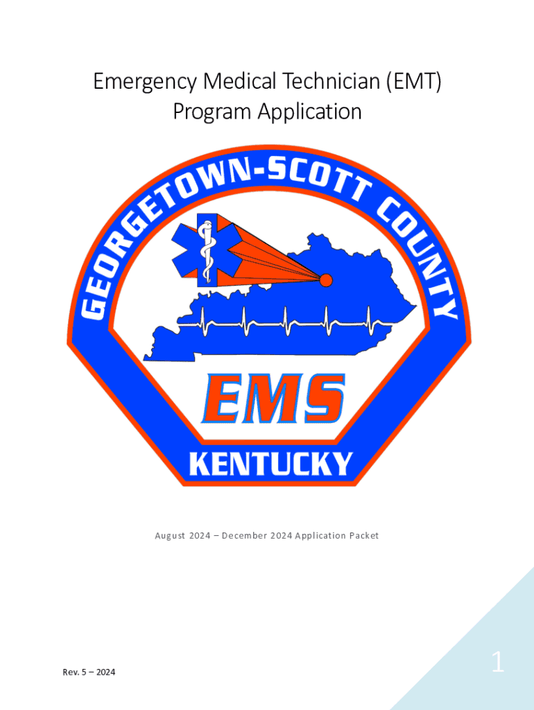 Emergency Medical Technician (EMT) Program ApplicationAugust 2024 December 2024 Application PacketRev. 5 20241Dear prospective EMT Student, Thank you for your interest in the Emergency Medical Technician
