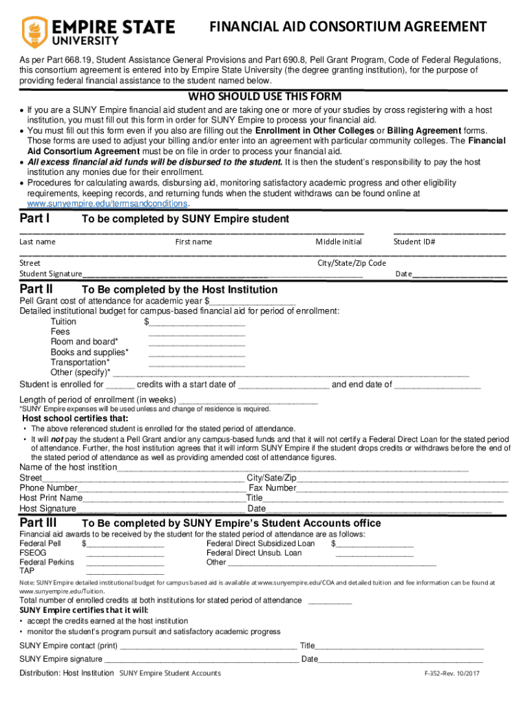 FINANCIAL AID CONSORTIUM AGREEMENT As per Part 668.19, Student Assistance General Provisions and Part 690.8, Well Grant Program, Code of Federal Regulations, this consortium agreement is entered into