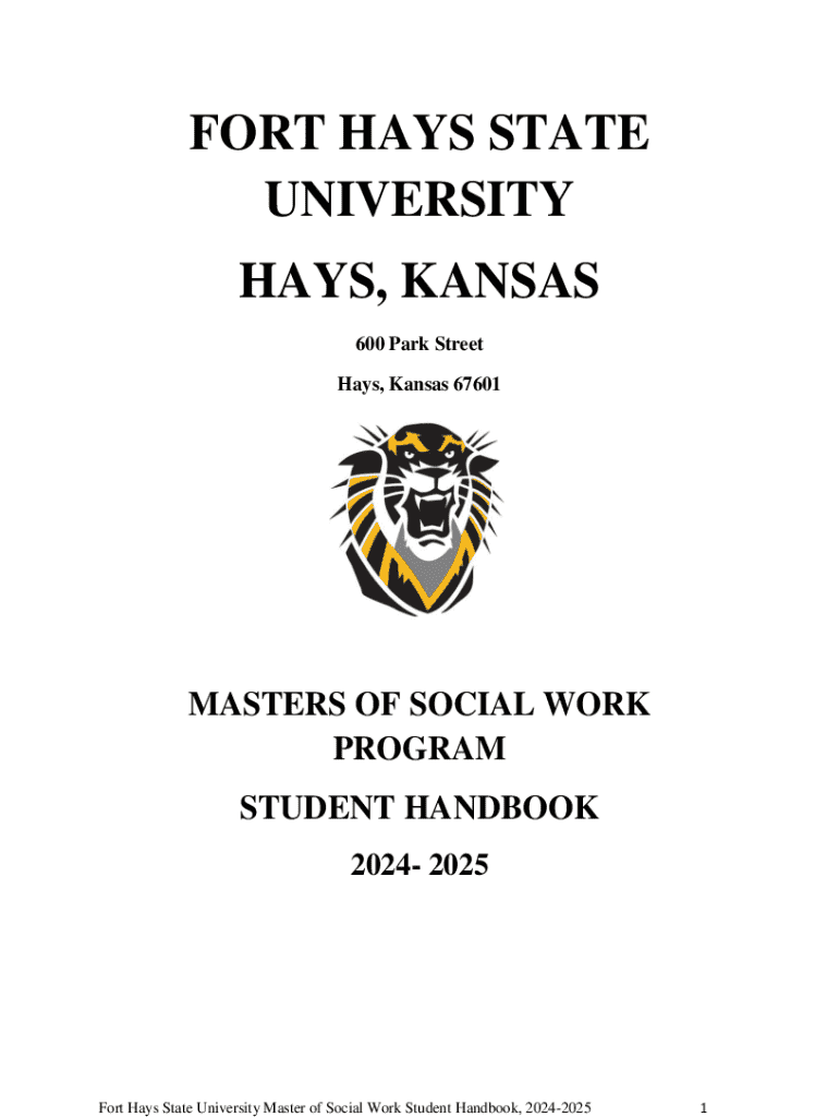 FORT HAYS STATE UNIVERSITY HAYS, KANSAS 600 Park Street Hays, Kansas 67601MASTERS OF SOCIAL WORK PROGRAM STUDENT HANDBOOK 2024 2025Fort Hays State University Master of Social Work Student Handbook,