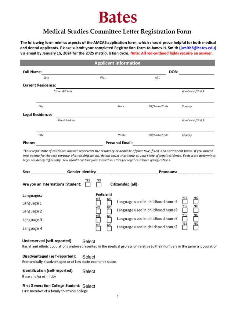 Medical Studies Committee Letter Registration Form