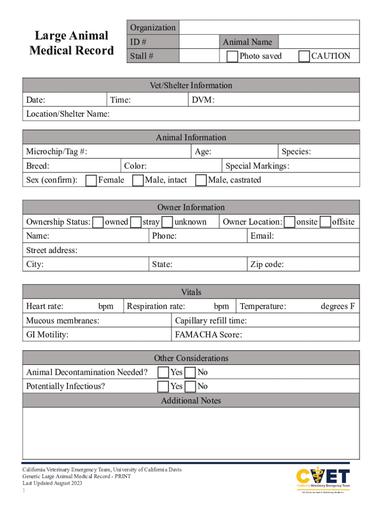 ID #Animal NameS tall #[_] Photo saved[_] Cautioned/Shelter Information