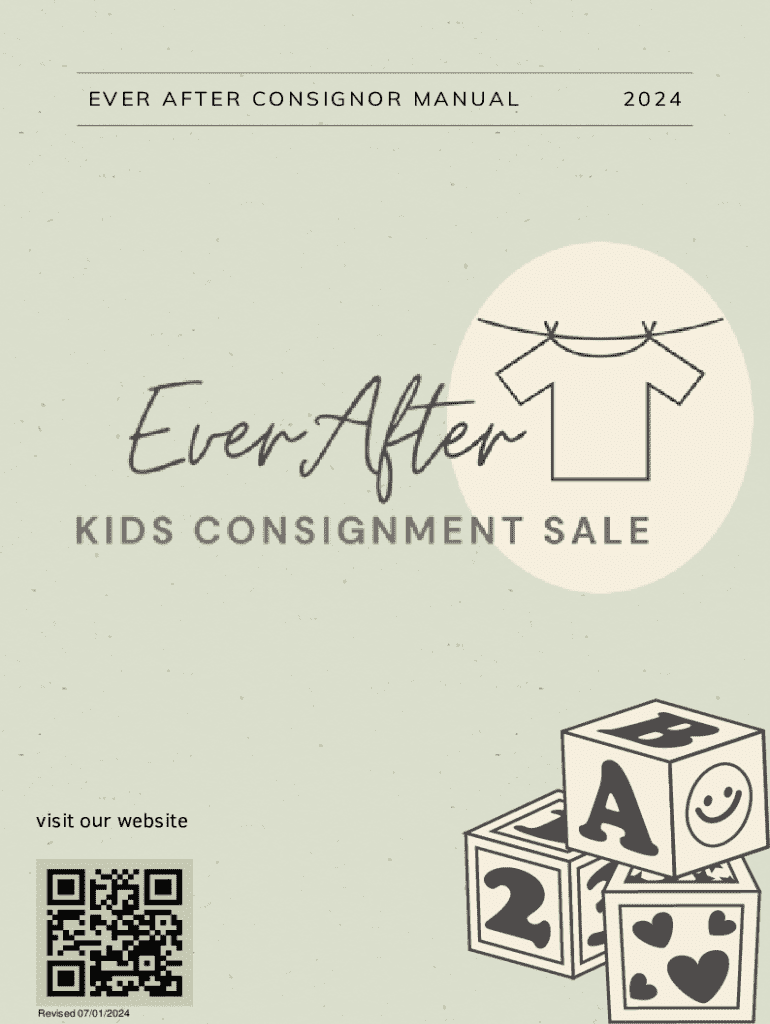 EVER AFTER CONSIGNOR MANUALvisit our websiteRevised 07/01/20242024HOW TO CONSIGN Before registering for any of our sales, please be aware of the following: ALL CONSIGNORS MUST BRING A MINIMUM OF THIRTY