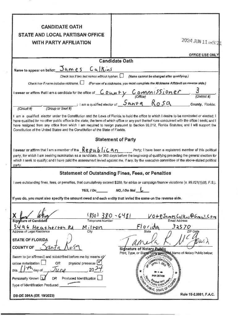 CANDIDATE APOSTATE AND LOCAL PARTISAN OFFICE2024 JUN 11 AM9:WITH PARTY AFFILIATIONOFFICE USE Non-candidate OathjName to appear on ballot:0. M:e s C OK, ii j\'