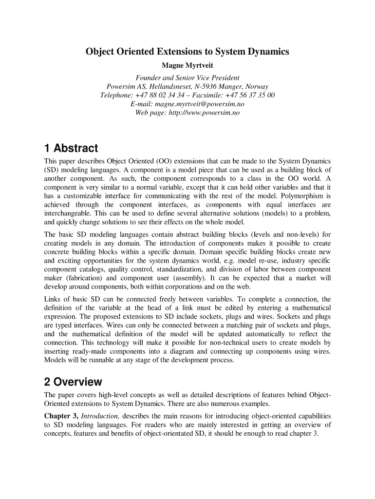 Get the free Object Oriented Extensions to System Dynamics - systemdynamics