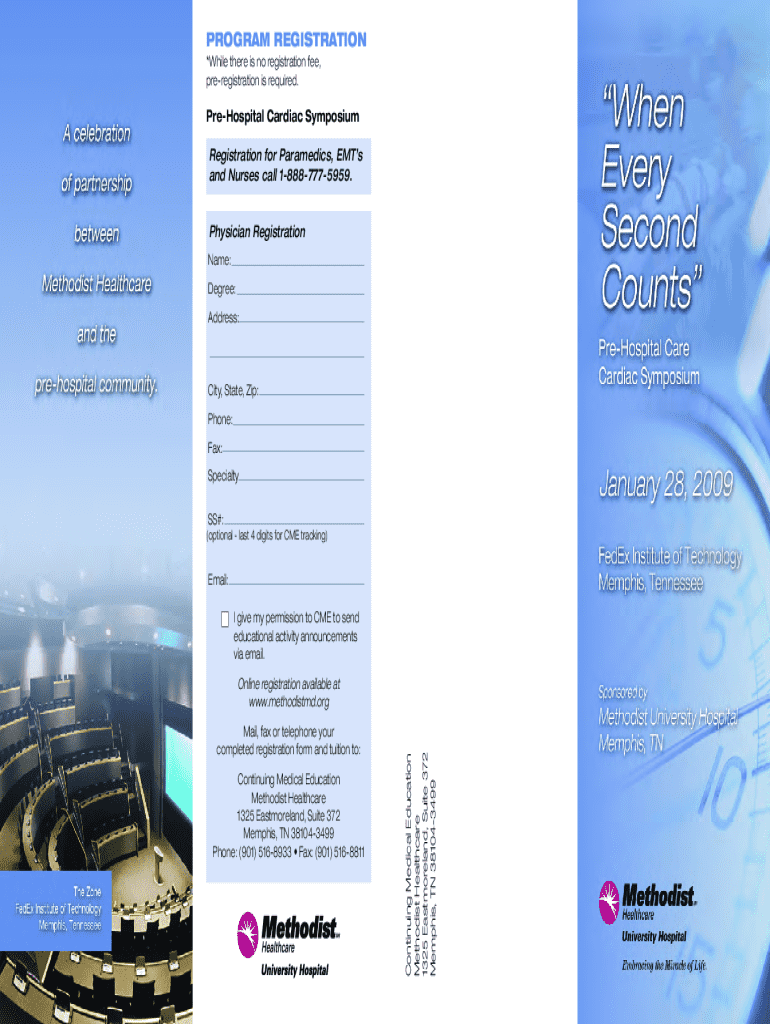 PROGRAM REGISTRATION *While there is no registration fee, preregistration is required.PreHospital Cardiac Symposium Registration for Paramedics, EMTs and Nurses call 18887775959. Physician Registration