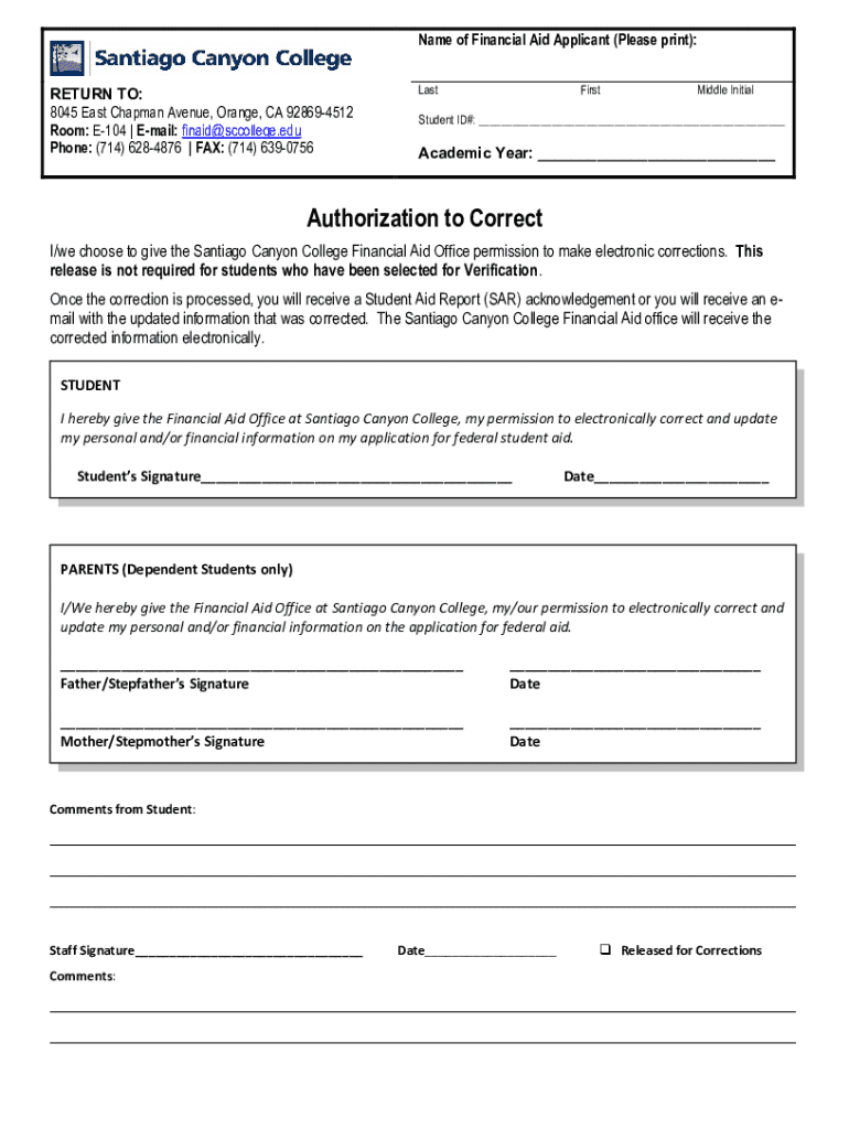 Authorization to correct can typically be filled out by providing the corrected information, the reason for the correction, and any additional documentation that supports the correction.