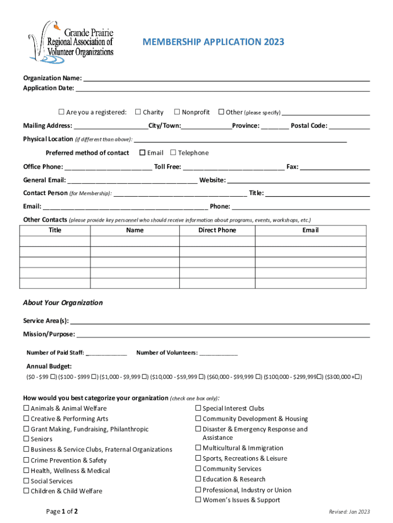 MEMBERSHIP APPLICATION 2023Organization Name: