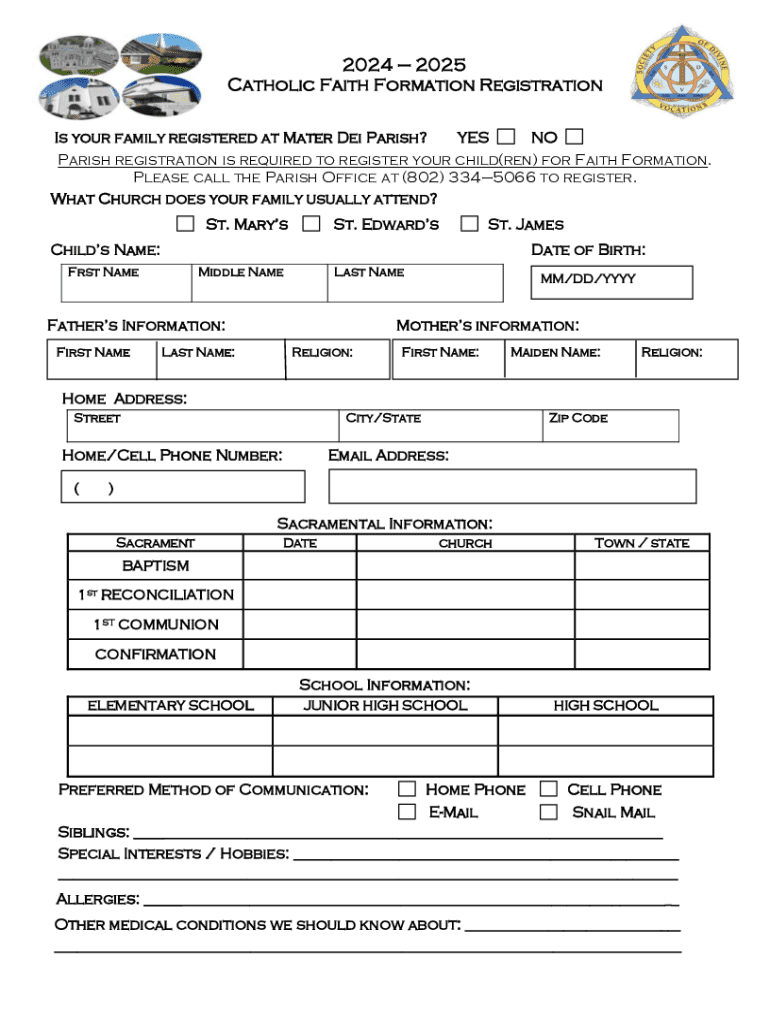 Basic personal information of the youth, confirmation date, retreat participation details, and any required documentation.