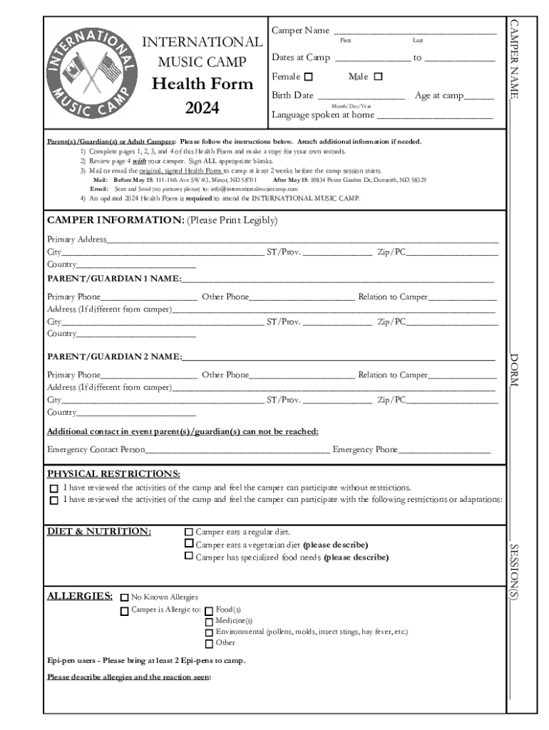 Month/Day/Paralanguage spoken at home ___Parent(s)/Guardian(s) or Adult Campers: Please follow the instructions