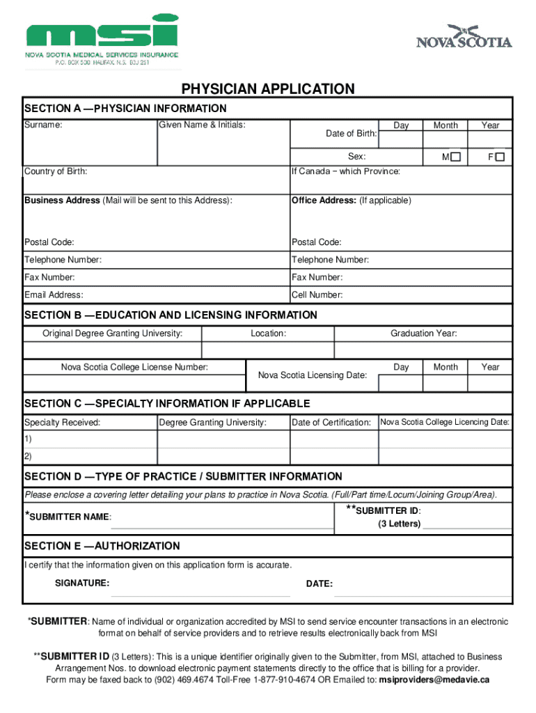 PHYSICIAN APPLICATION