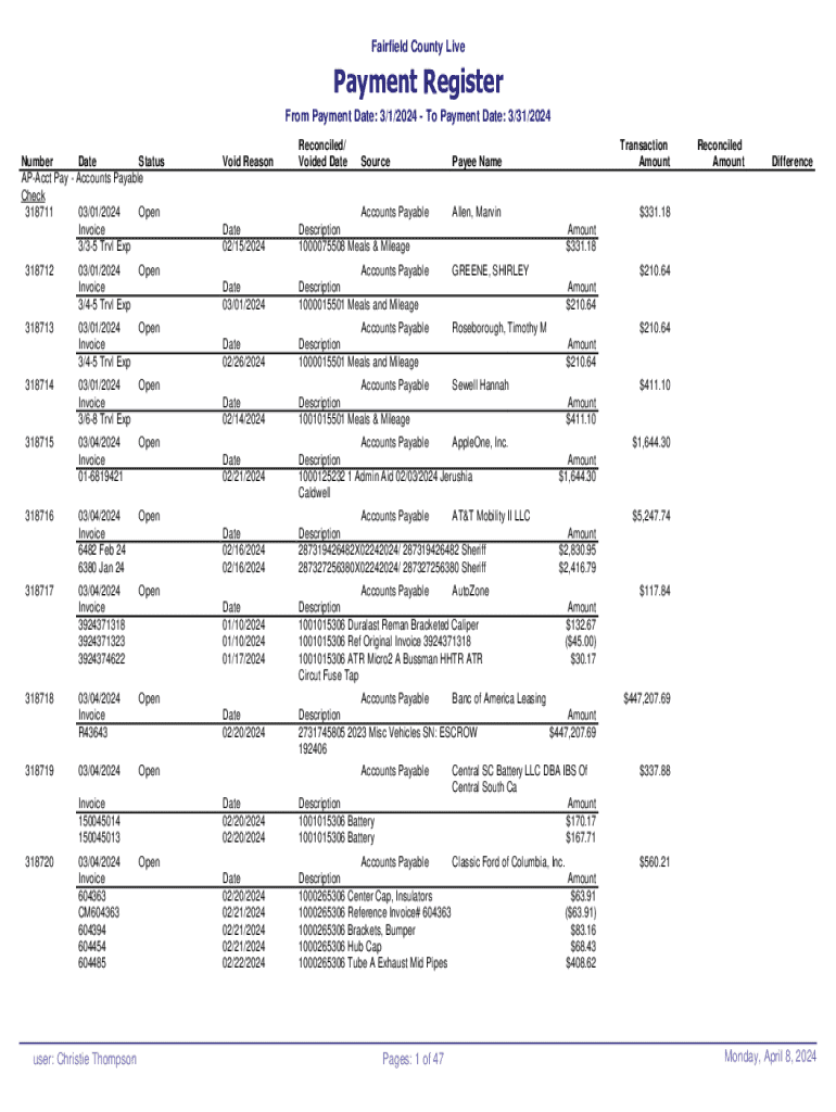 Get the free From Payment Date: 3/1/2024 - To Payment Date: 3/31/2024