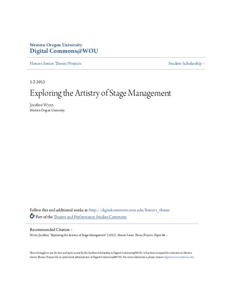 Honors Senior Theses/ProjectsStudent Scholarship 522013Exploring the Artistry of Stage Management