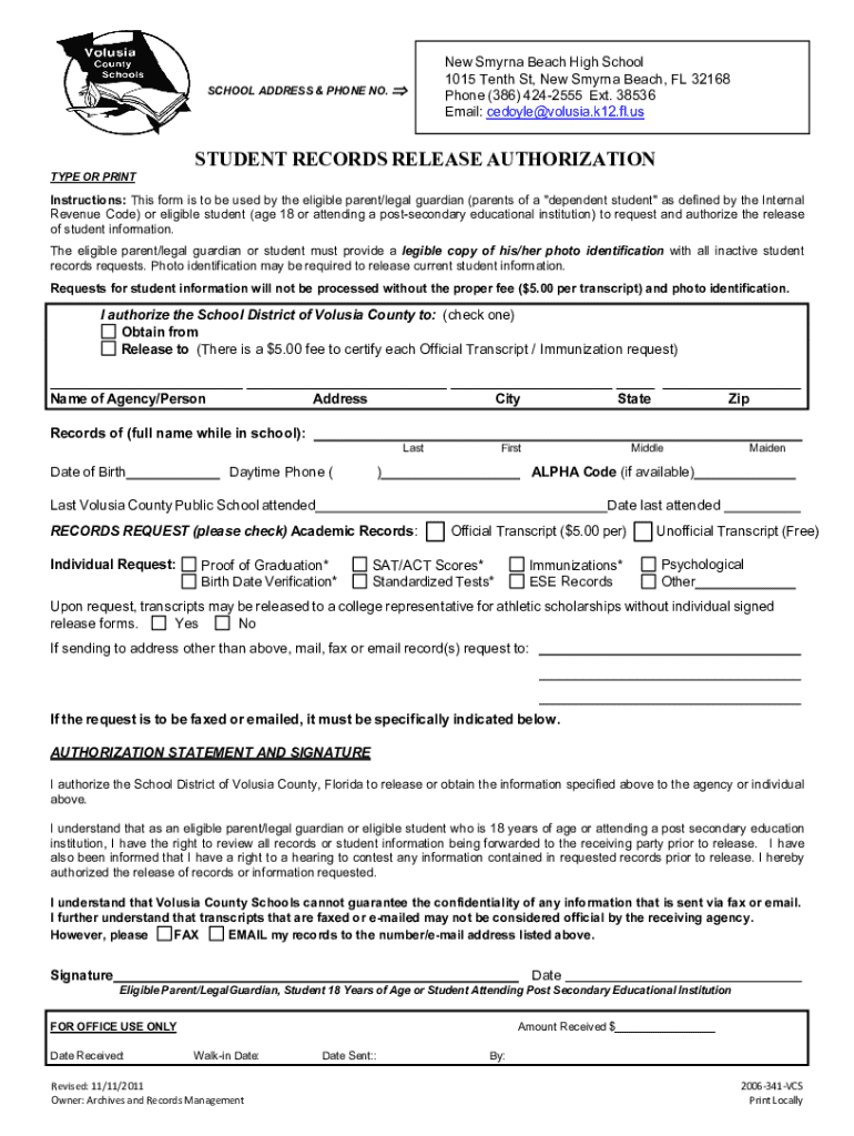 Email: cedoyle@volusia.k12.fl.usSTUDENT RECORDS RELEASE