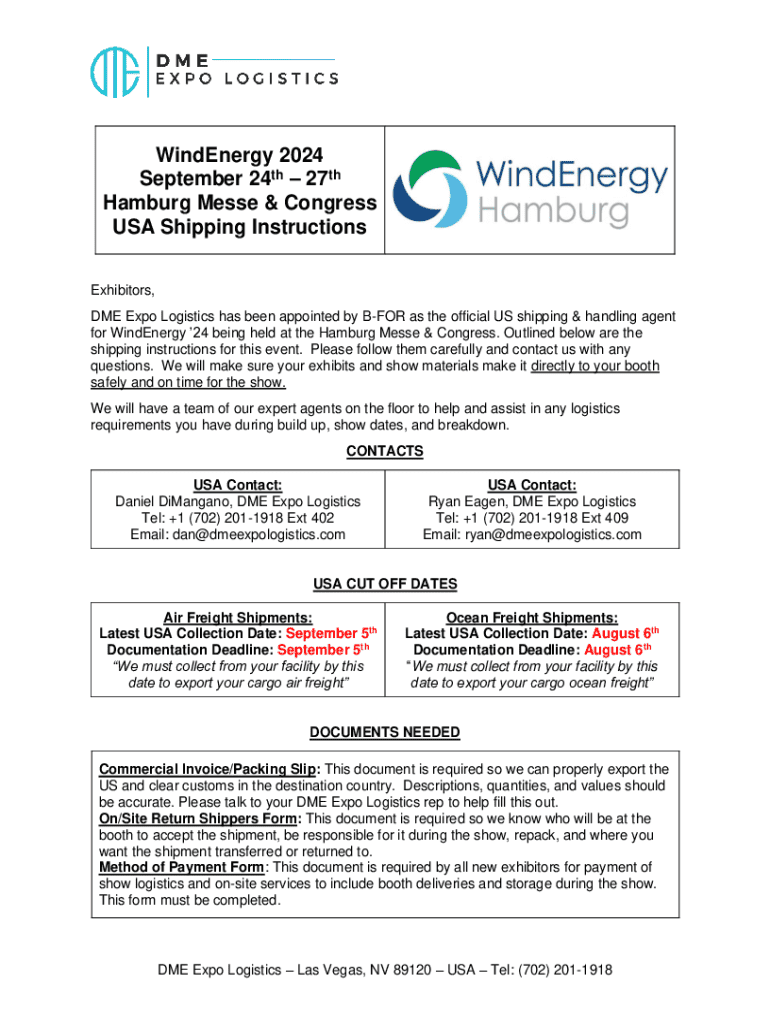 DME Expo Logistics has been appointed by FOR as the official US shipping & handling agent