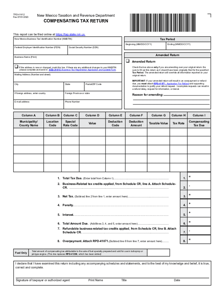 Rev.07/01/2023×30100200*COMPENSATING TAX Returns report can be filed online at https://tap.state.nm.usTax Period Mexico Business Tax Identification