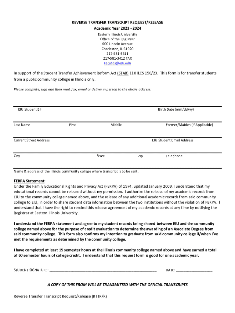Get the free Reverse Transfer Transcript Request/Release (RTTR/R) ...