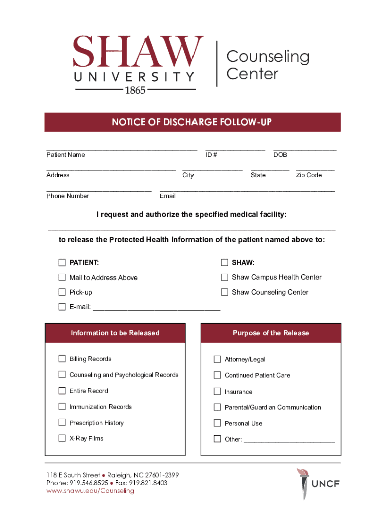 NOTICE OF DISCHARGE FOLLOWUP