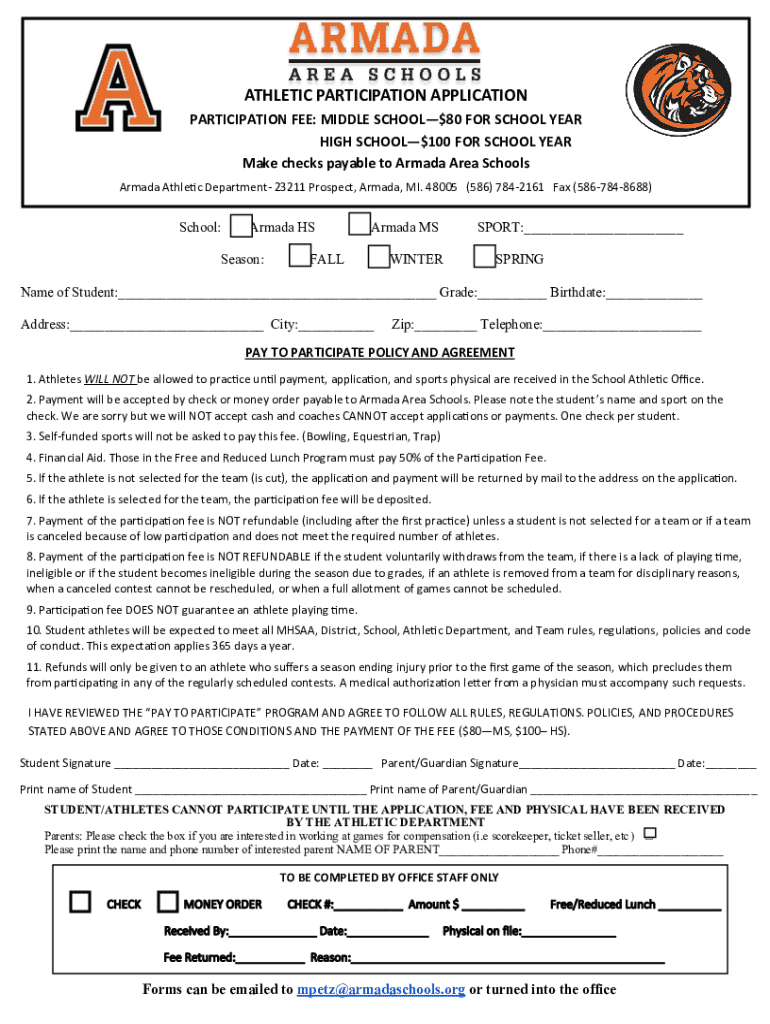 Get the free PARTICIPATION FEE: MIDDLE SCHOOL$80 FOR SCHOOL YEAR