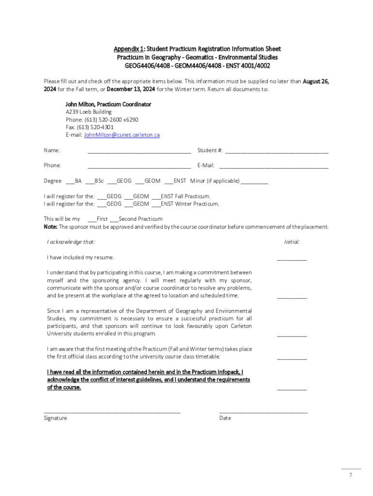 Practicum in Geography, Geomatics & Environmental Studies Student Infopack 20242025 For students registered or intending to register in GEOG4406/4408 GEOM4406/4408 ENST4001/4002 IMPORTANT: Contains