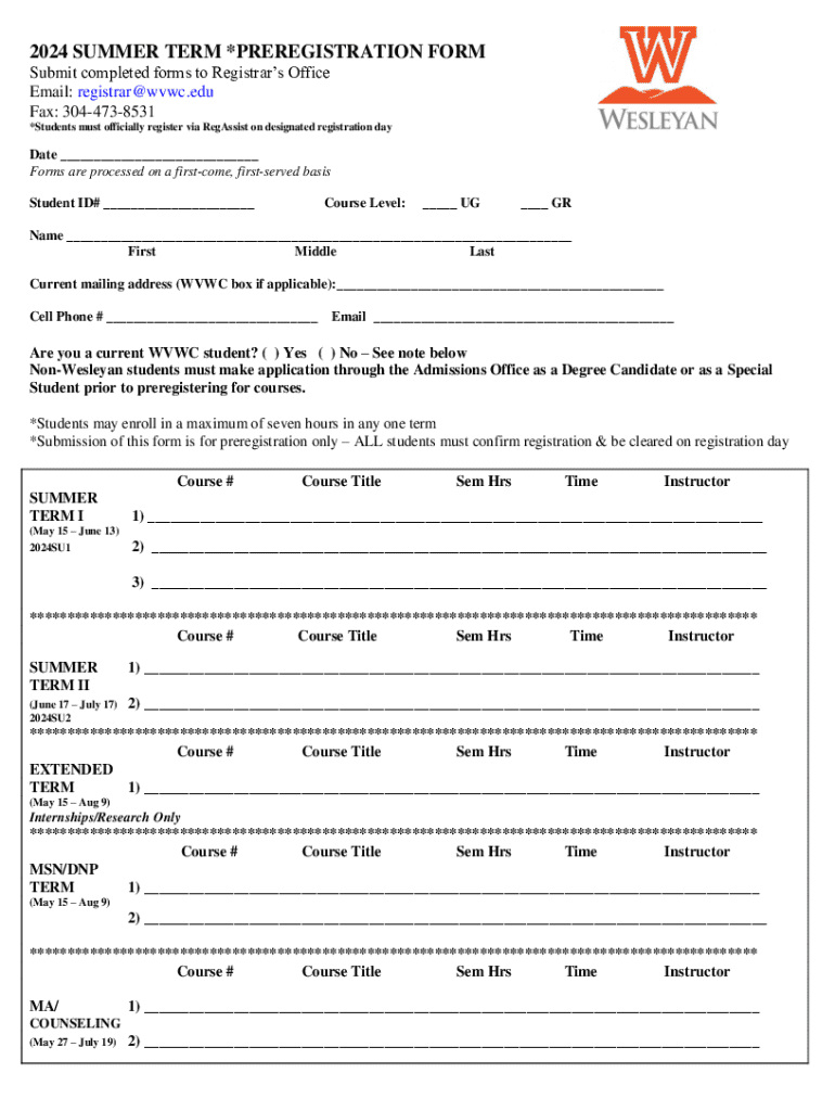 2024 Summer Term Preregistration is not the form you're looking for?Search for another form here.