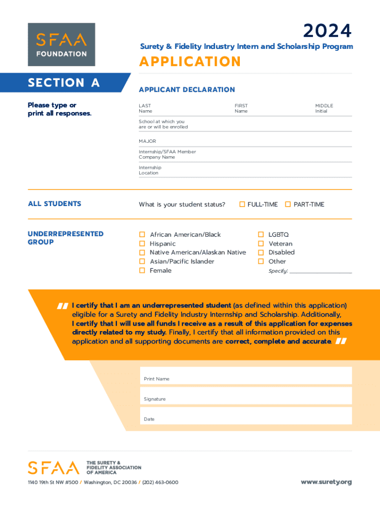 Get the free The Surety Foundation Surety and Fidelity Industry Intern and ...