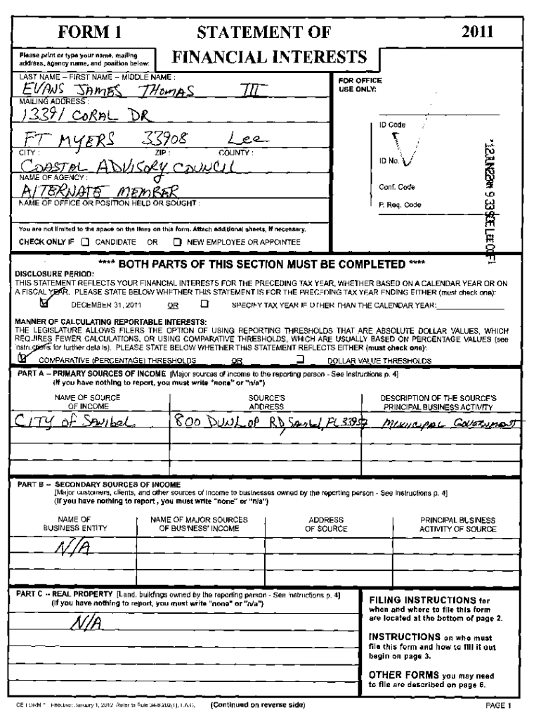 FORM 12011STATEMENT OF FINANCIAL INTERESTS I
