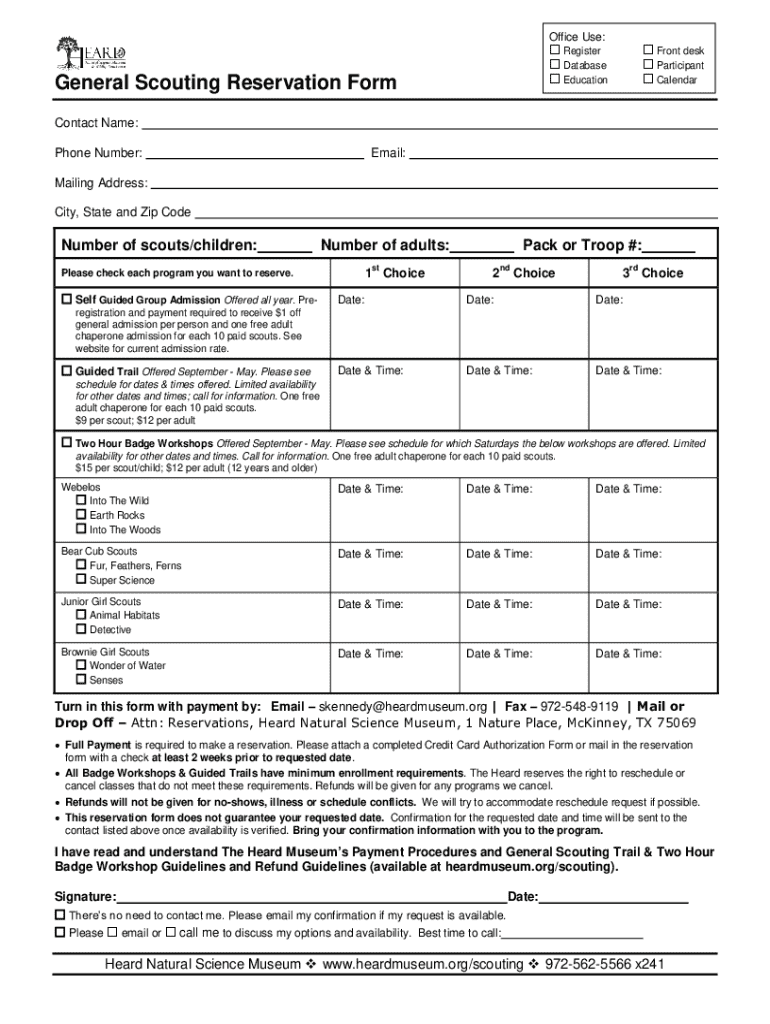 Get the free Residential Camp Reservation Form In-County Scout Groups