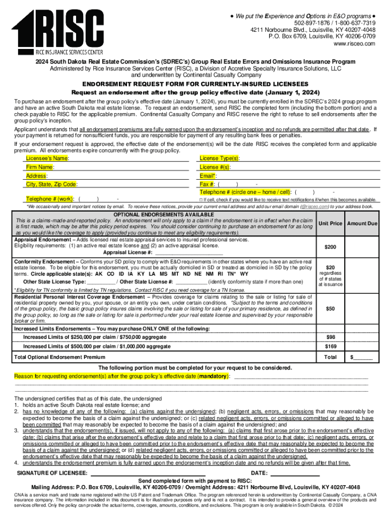 We put the Experience and Options in E&O programs 5028971876 / 18006377319 4211 Norbourne Blvd., Louisville, KY 402074048 P.O. Box 6709, Louisville, KY 402060709 www.risceo.com 2024 South Dakota Real
