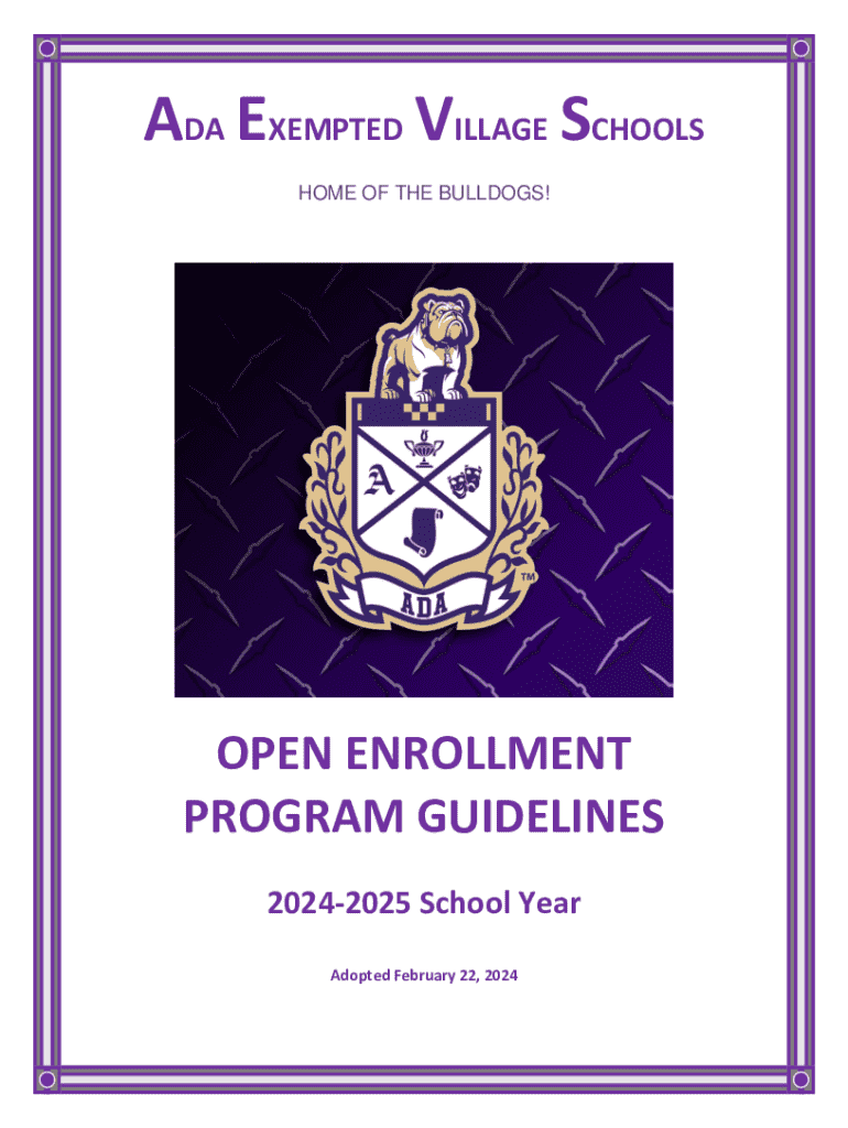 ADA EXEMPTED VILLAGE SCHOOLS HOME OF THE BULLDOGS!OPEN ENROLLMENT PROGRAM GUIDELINES 20242025 School Year Adopted February 22, 2024ADA EXEMPTED VILLAGE SCHOOLS INTERDISTRICT OPEN ENROLLMENT GUIDELINES
