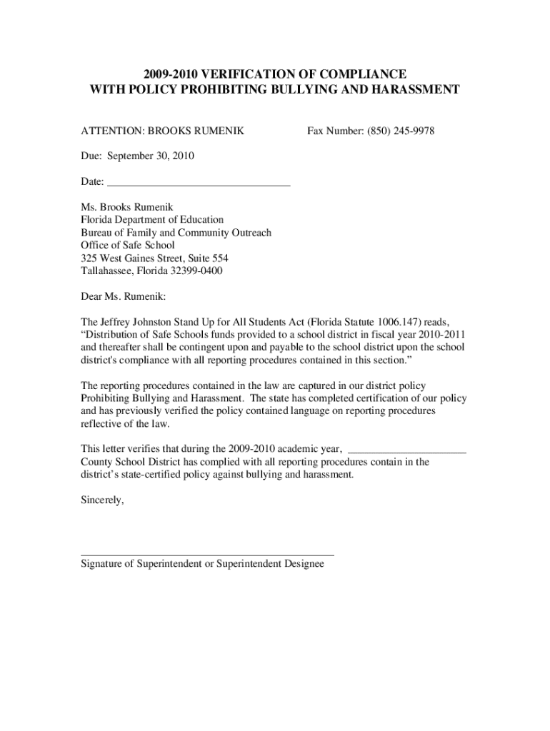 WITH POLICY PROHIBITING BULLYING AND HARASSMENT