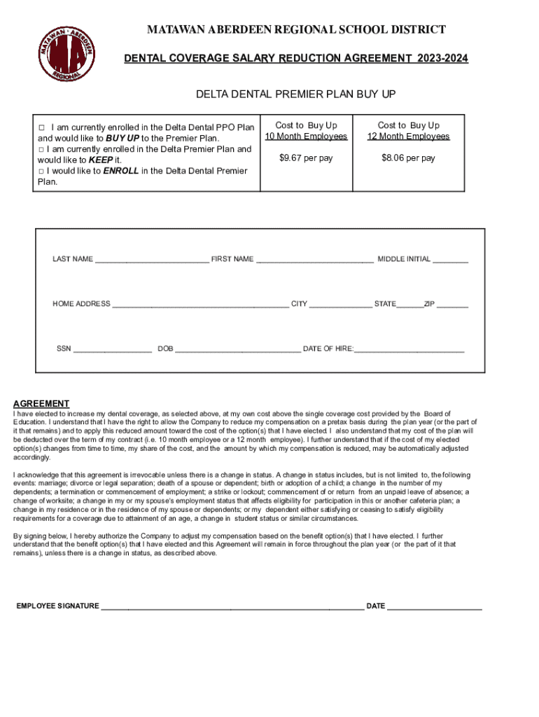 DENTAL COVERAGE SALARY REDUCTION AGREEMENT 20232024