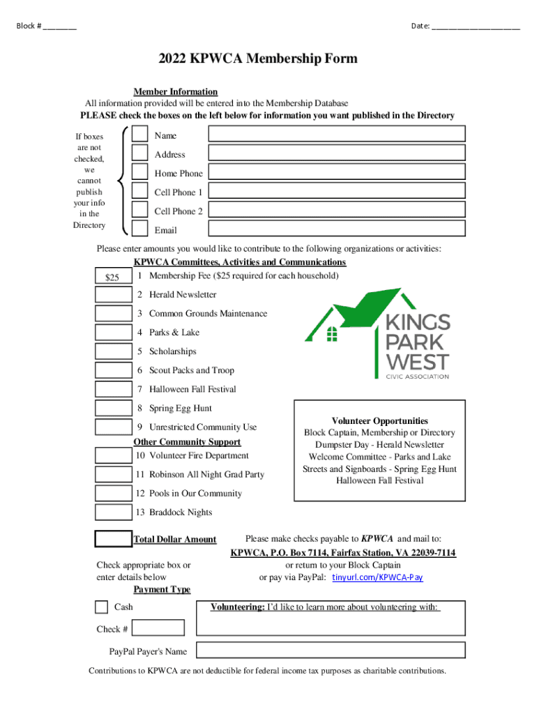 Block # ___Date: ___2022 KPW CA Membership Form