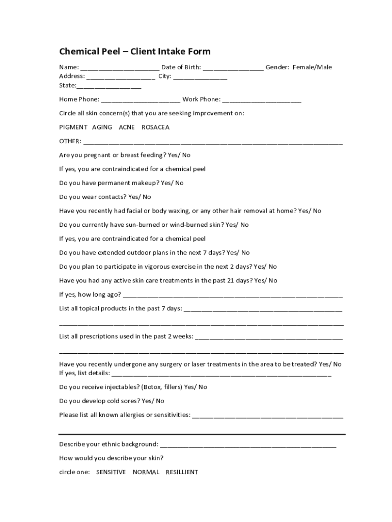 Get the free Chemical Peel Intake & Consent Form: For Skin Beauty ...