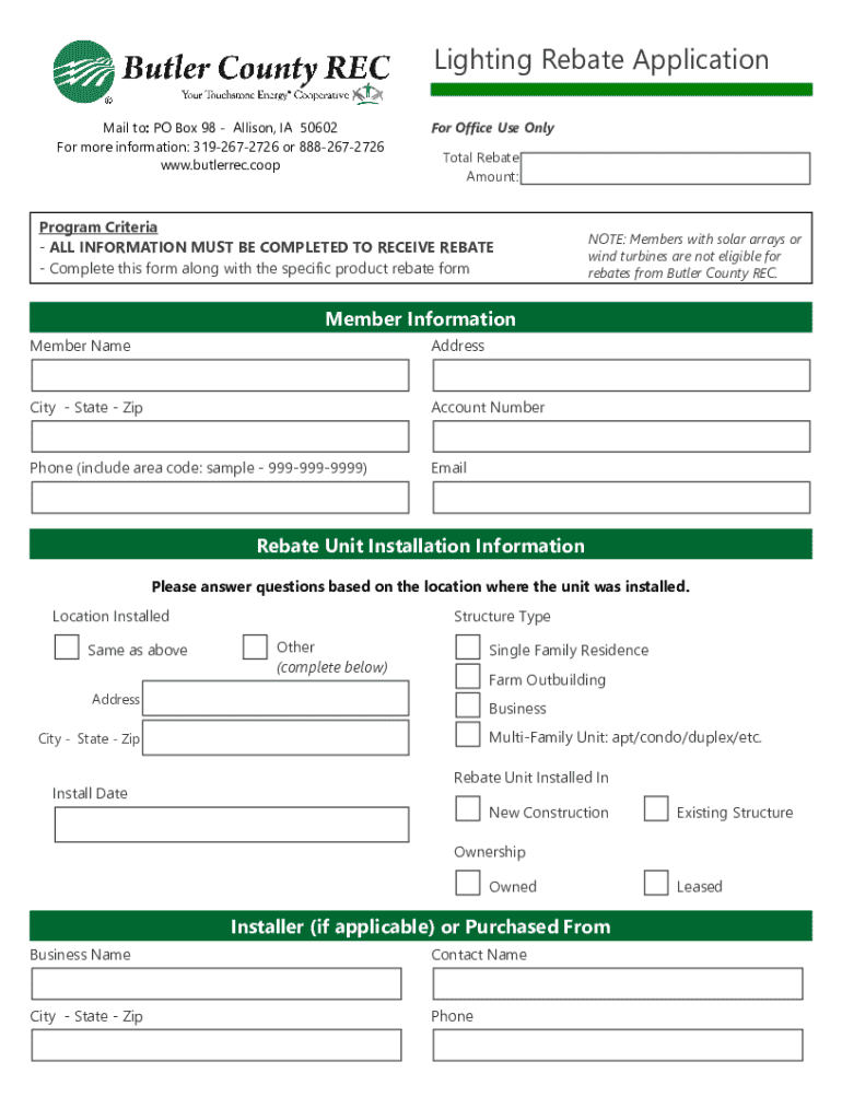 Get the free Butler County Rural Electric Cooperative 2024 Commercial ...