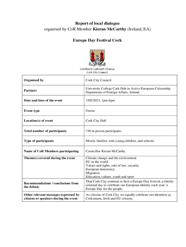 Europe Day Festival CorkOrganised by Cork City CouncilPartnersUniversity College Cork Hub in Active European Citizenship