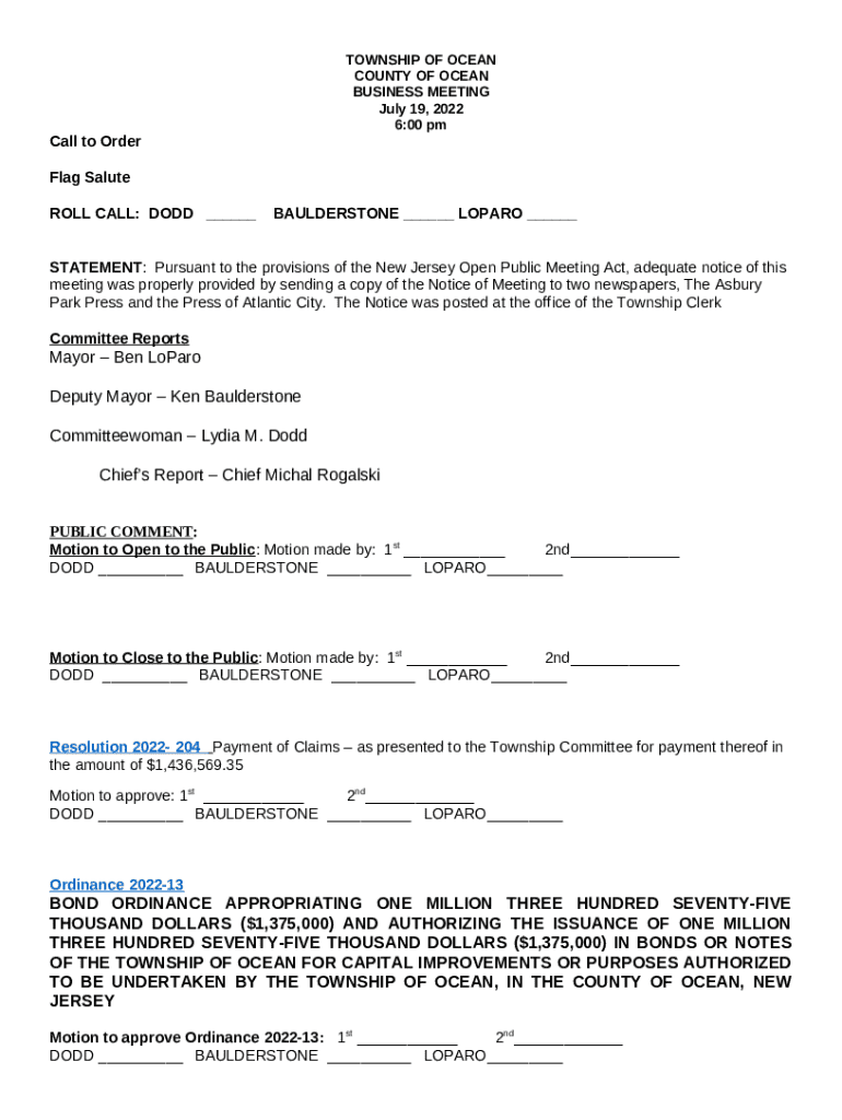 Instructions for the Ocean Township Clerk Swears in LoParo as Mayor and ... form