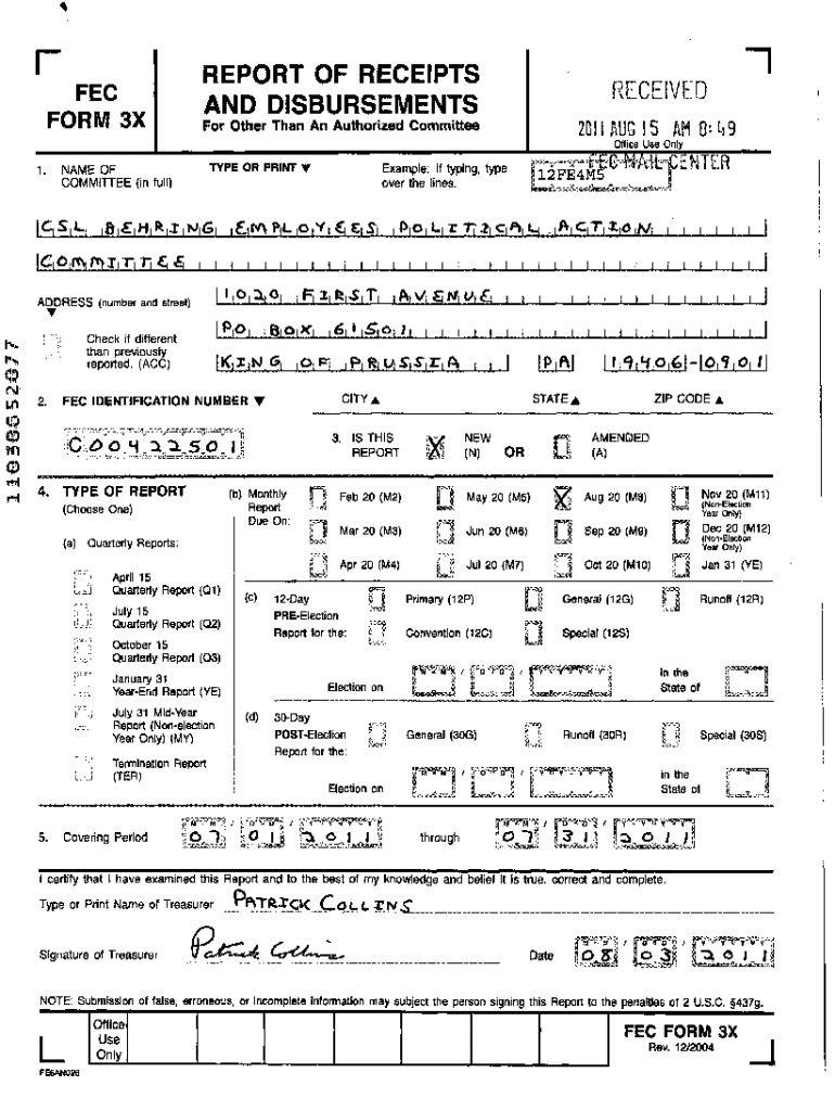 AND DISBURSEMENTSRECEIVEDFor Other Than An Authorized Committee2011 AUG 15 AM Basis