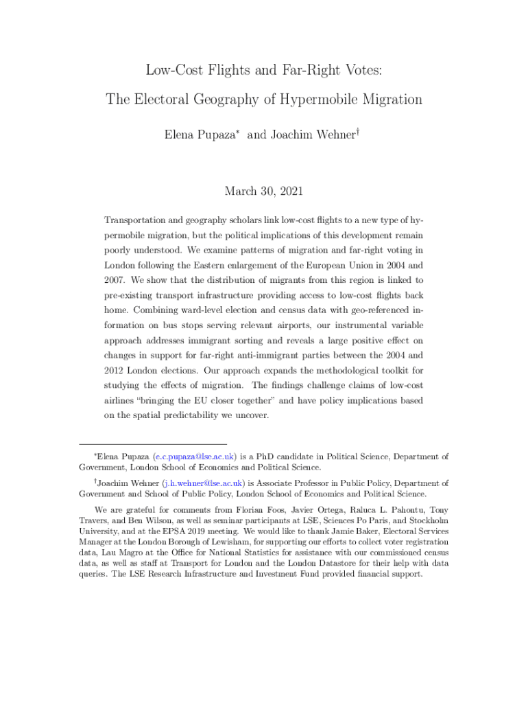 LowCost Flights and FarRight Votes: The Electoral Geography of Hypermobile Migration Elena Pupaza and Joachim WehnerMarch 30, 2021 Transportation and geography scholars link lowcost flights to a new