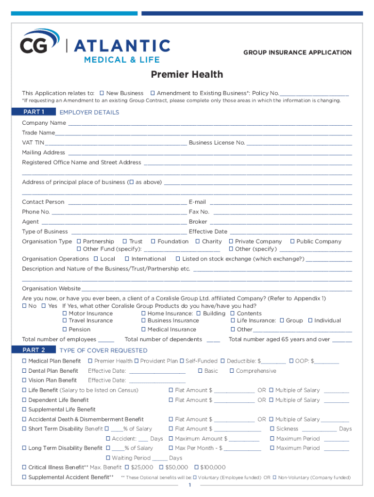 This Application relates to: New Business Amendment to Existing Business*: Policy No.___*If requesting an Amendment to an existing Group Contract, please
